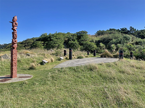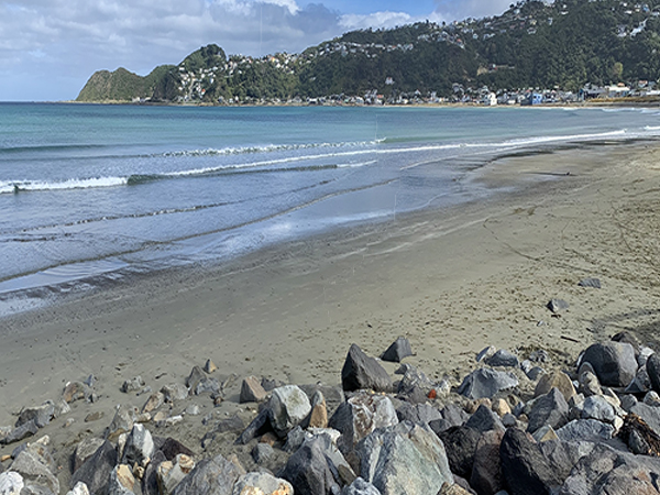 Finally back down at the beach, or did we take a wrong turn and end up on Easter Island? The Lyall Bay moai statue, gifted to Wellington by a former Chilean president. - 11/05/20