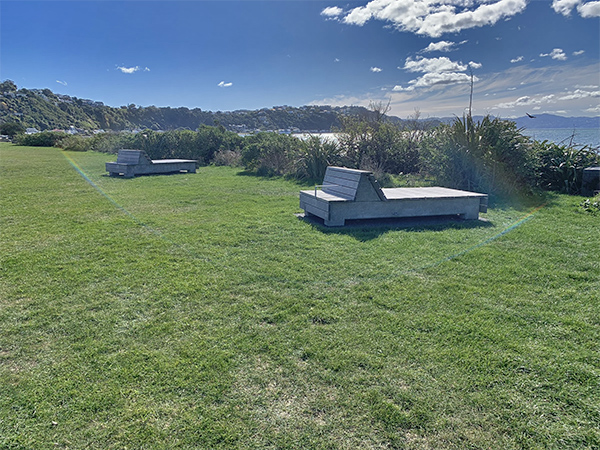 Back around into Churchill Park Seatoun and the public sunbathing benches. - 22/04/20